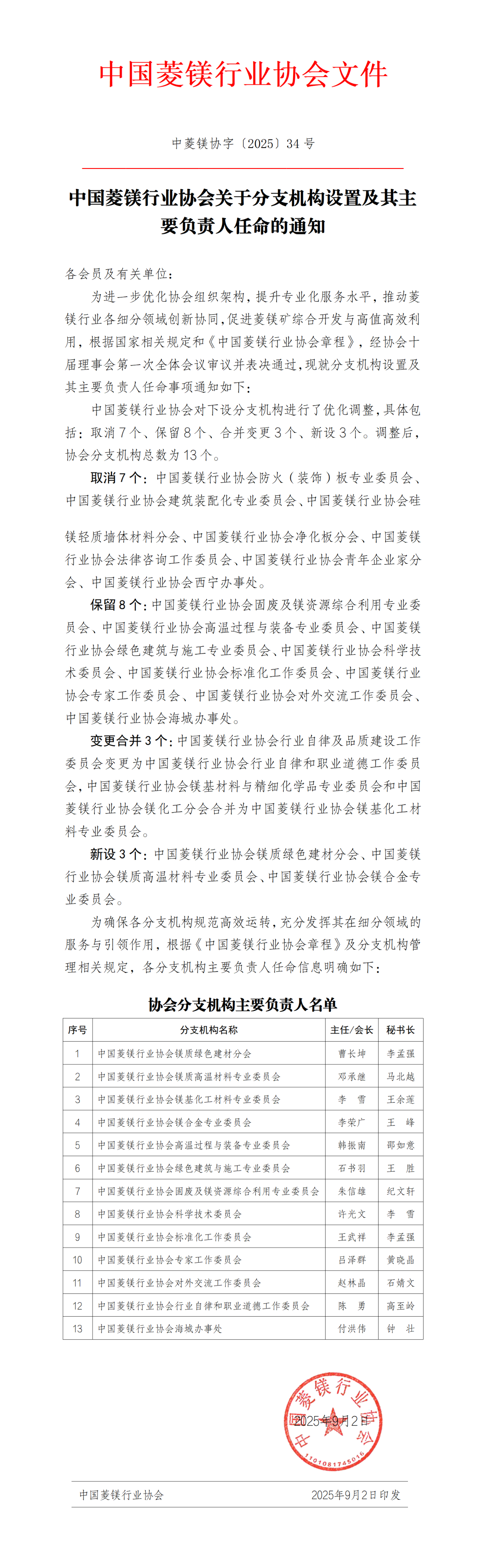 中菱镁协字【2025】34号 中国菱镁行业协会关于分支机构设置及其主要负责人任命的通知.pdf